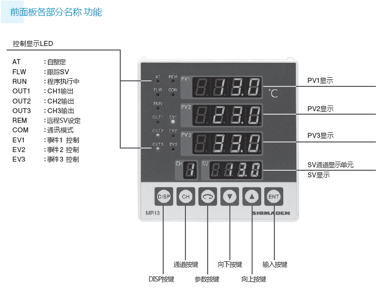 ♦ 區(qū)域控制可以實現(xiàn)獨立3通道輸入、3通道設定。 ♦ CH2?CH3 的設定值可跟蹤 CH1 (可設定偏移) SV 設定 ♦ CH2?CH3 的PV輸入值可跟蹤CH1 的PV輸入 ♦ 采用抗超調專家PID ♦ 豐富的選件功能:程序功能, 事件功能, 遠程?DI 輸入, 通訊功能(RS‐232C 或 RS‐485)